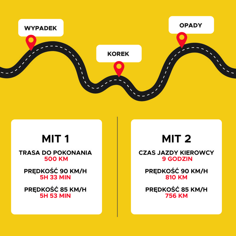 Kiedy już dokonasz wyboru ciężarówki, zastanów się także nad „parkietem”, czyli trasą, którą zamierzasz jechać, ponieważ ma ona olbrzymi wpływ na spalanie. Wzgórza, zakręty, a niekiedy nawet dziury w drodze mogą skutecznie zwiększyć liczbę litrów oleju napędowego, które będziesz musiał zainwestować. Wysoka prędkość nie sprzyja ekonomice – im szybciej jedziesz, tym więcej energii zużywasz na pokonanie oporu powietrza. Dlatego warto pilnować prędkości; w rezultacie wartość spalania na 100 km może spaść nawet o 2-3 litry!